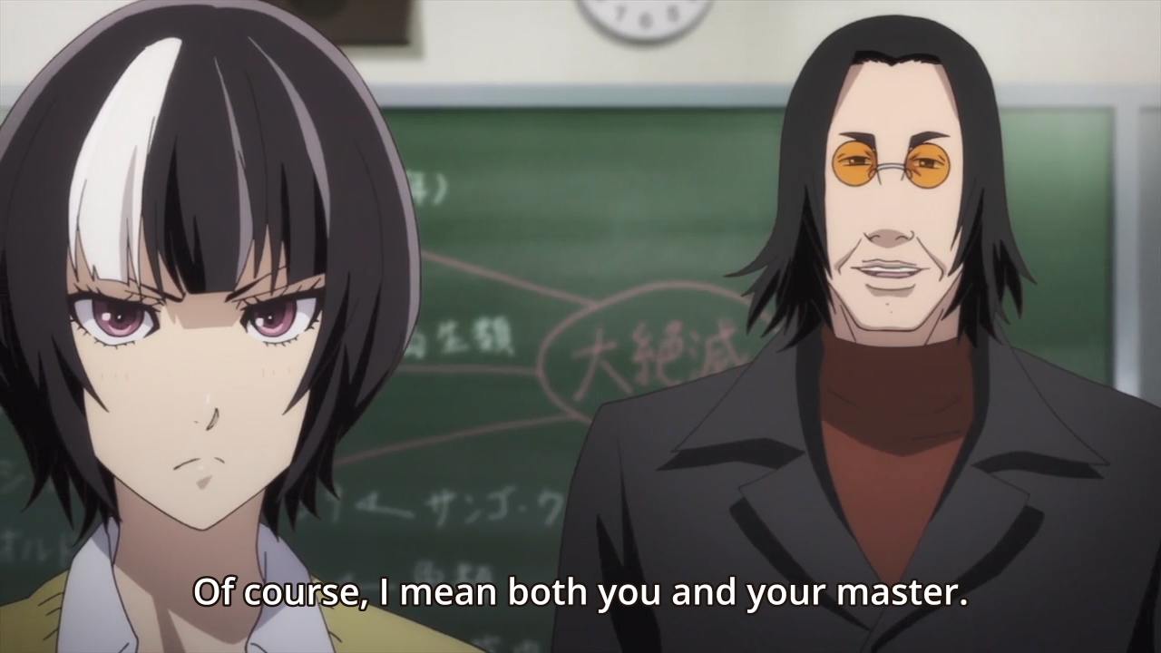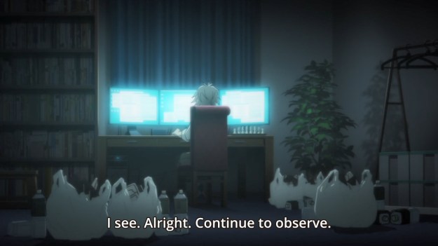 — Creepazoid goes on a vague rant about humanity, but he doesn’t really have anything substantive to say. It’s just your bog standard megalomaniac speech. You can feel the lack of effort permeating itself throughout this entire anime. It’s completely devoid of heart. No one’s even trying.