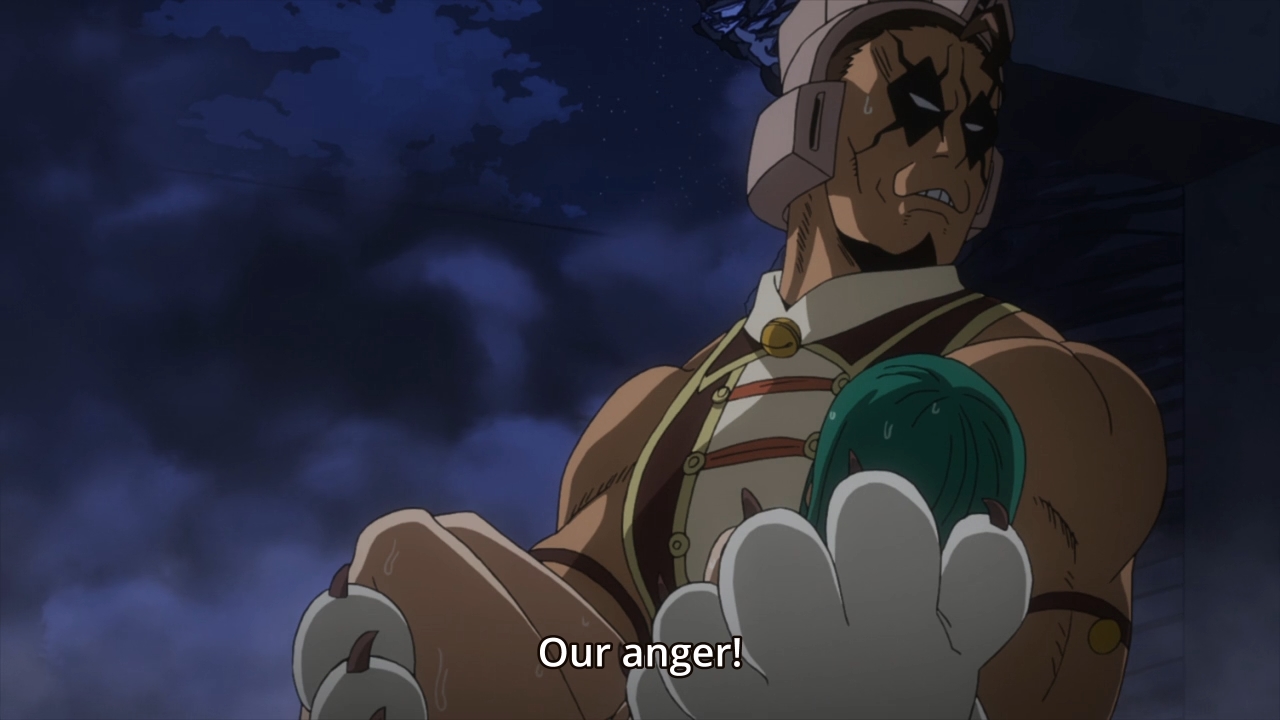 — Best Jeanist tries to subdue the guy, but he’s clearly outmatched. But before we can see what All For One just did, the credits roll. Boooooo. Booooooooooooo.