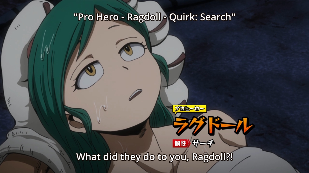 — Poor Ragdoll. It turns out All For One stole her powers. I don’t see him going down anytime soon, and even if he did, that doesn’t mean that she’ll get her powers back. This is pretty much the end of her pro career. Plus, didn’t they say that like 80% of the population has a Quirk? Either way, it must feel crippling to suddenly lose something that you’ve had all your life — something that you actually identified with. Her Quirk was essentially her, and now it’s gone. Ragdoll’s going to need a lot of support after this incident, because I can’t imagine how she won’t be devastated when she finds out that she’s Quirk-less.