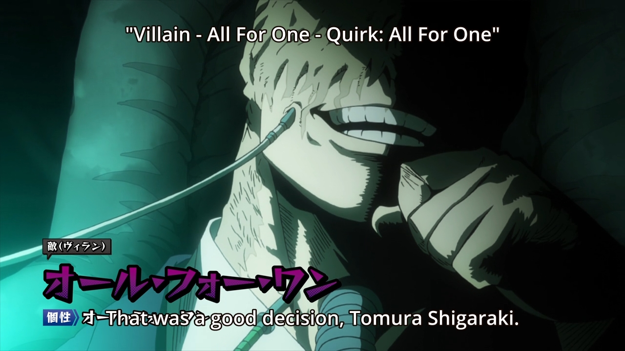 — Maybe this guy can stop hiding in the shadows and finally do something. I just want at least one badass villain. Stain didn’t count, because I thought his philosophy was dumb. C’mon, gimme one badass villain. Gimme someone that I would love to root for, but I know I can’t because they’re evil.