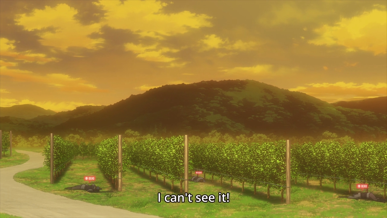 — When Karen and Miyu check the map, the girls find themselves isolated in the upper right-hand corner of the battlefield. There’s literally nobody near them. Likewise, Pito and M are all the way in the opposite corner. Looks like Karen’s going to have to murder a bunch of nobodies before she can throwdown with Pito. After all, we still got like five episodes left counting this one.