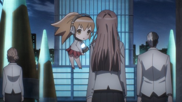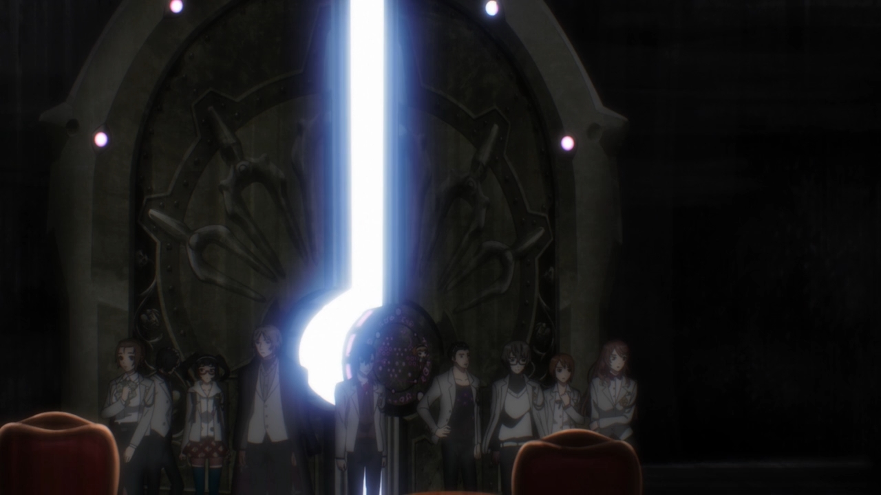 — When the episode begins, the entire Go-Home Club are together, walking through an abandoned building. Why? At the very top of the tower is supposedly a door that connects Mobius to the real world. Yep, they can leave this simulation through said door, but only if Mu helps them. I’d like to know how we got here or even learned all of this information, but let’s face it, this is just a bad adaptation.