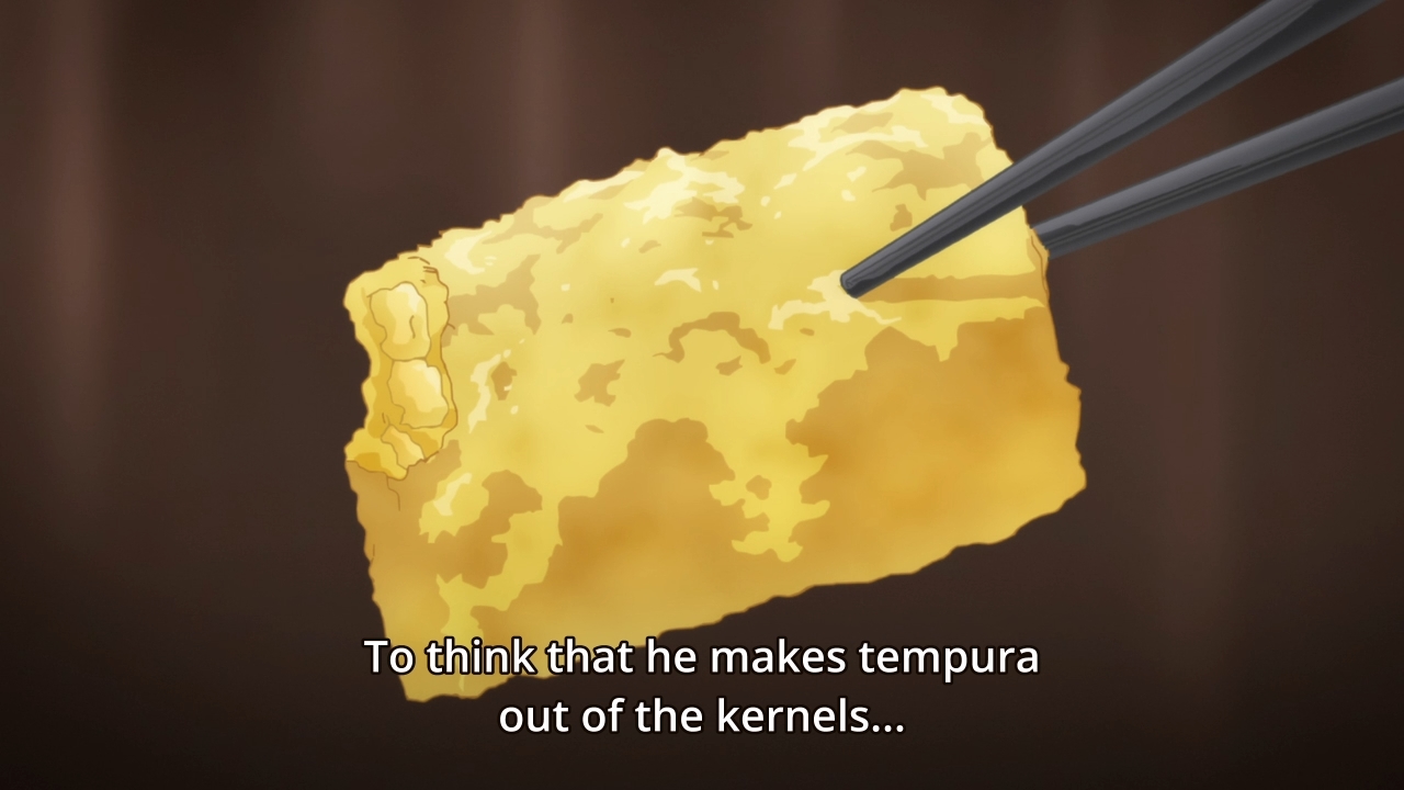 — Aoi is amazed that the chef can make corn tempura without the corn popping. Um, someone should tell Aoi that not every corn pops.