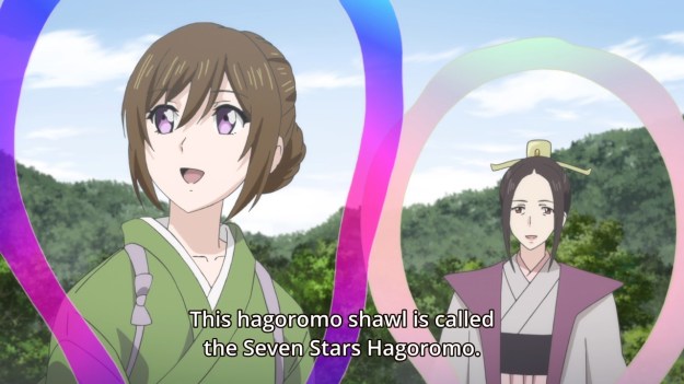 — Apparently, the rainbow shawl can cover up for Aoi’s human weaknesses. That’s convenient. Ritsuko won’t specify exactly what human weaknesses she’s referring to, though. Nevertheless, Aoi now has this, Odanna’s pendant, and the tengu’s pot leaf. By the end of this series, she’ll probably have enough artifacts to conquer the hidden realm if she wants.