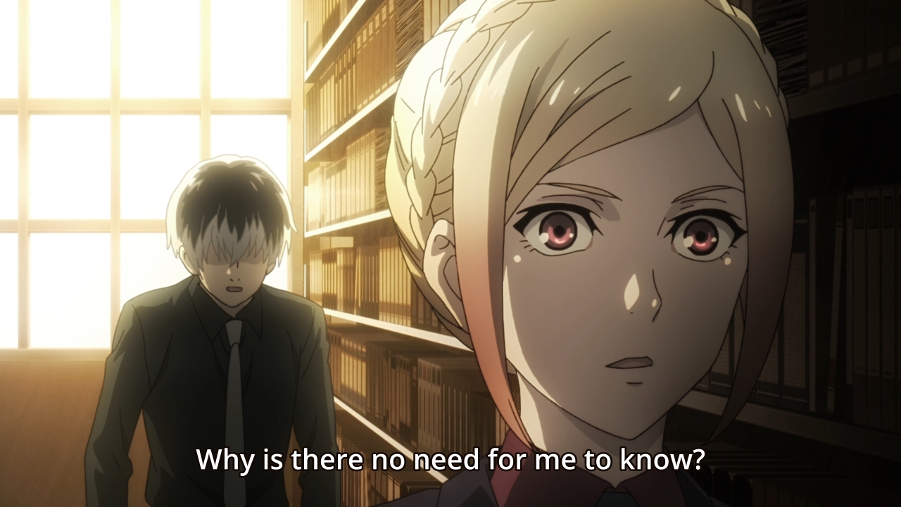 I think it’s sad that even when the episode focuses on Ken’s/Haise’s mental anguish, it’s still uncompelling. There’s nothing inherently wrong with an amnesiac trying to discover his or herself, but this just feels cheap. It feels cheap because the story started out with Ken trying to understand who he was and what he wanted to be. Was he still human? How human can he afford to be be in this cruel world full of bloodthirsty ghouls and heartless humans? Could he get over his fears of loneliness? Could he ever get over his mother’s death? Unfortunately, because we’re hacks, we decided to just erase his memories and make him start over. I know I’m Ken, but I wanna be huuuuuumaaaaaaan. Waaaah. For fuck’s sake… it’s just too one-dimensional. Look, it’s too late to save this iteration of Tokyo Ghoul. Too many characters, too little progress. There seems to be no end in sight for either the ghoul vs. human conflict nor Ken’s/Haise’s issues. We just keep rehashing the same nonsense but with dumber action each time.