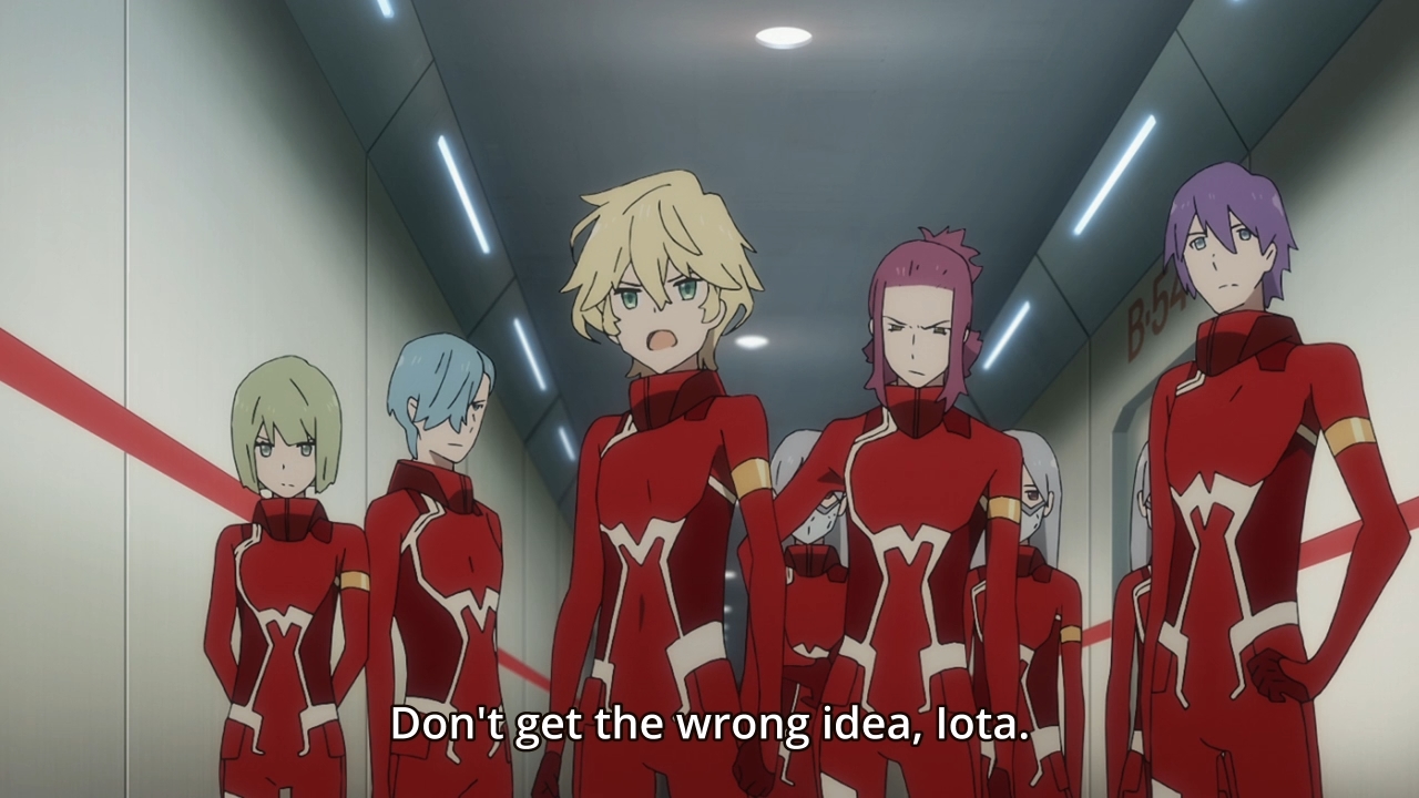— Nine Alpha sees that Zero-Two is still with Hiro and the rest of Squad 13, and he’s pissed. In fact, he almost looks like he’s jealous. If that’s how he really feels, he’s done a good job of hiding it up until now.