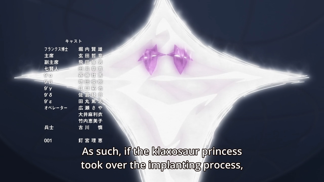 — I guess we’ll just get our exposition right now. According to Dr. Franxx, an ancient species had split into two forms, one of which returned to the planet to become magma energy. The other form, the klaxo sapiens, ate said magma energy in order to evolve. So everything in this world is currently powered by our “brethren.” When a male and a female klaxo sapiens couple up, they turn into klaxosaurs. They weren’t pregnant as I had presumed. Those cores were instead the male partners. Last but not least, FRANXXs are just klaxosaurs that humans can pilot. All that mining we had seen earlier in the series was simply to excavate klaxosaurs. Okay then.