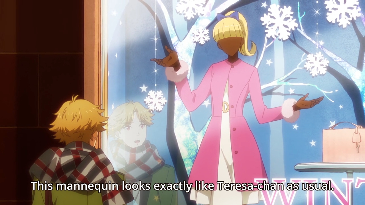— Mitsuyoshi gets to experience the pain of a breakup without actually having been in a relationship. Everywhere he looks, he’s reminded of Teresa. He sees her favorite coffee cup, her favorite sandwich (I think?), her last gift to him, her empty desk, so on and so forth. Hell, even the store mannequins remind Mitsuyoshi of the girl. These two lookalikes torture the guy even further.