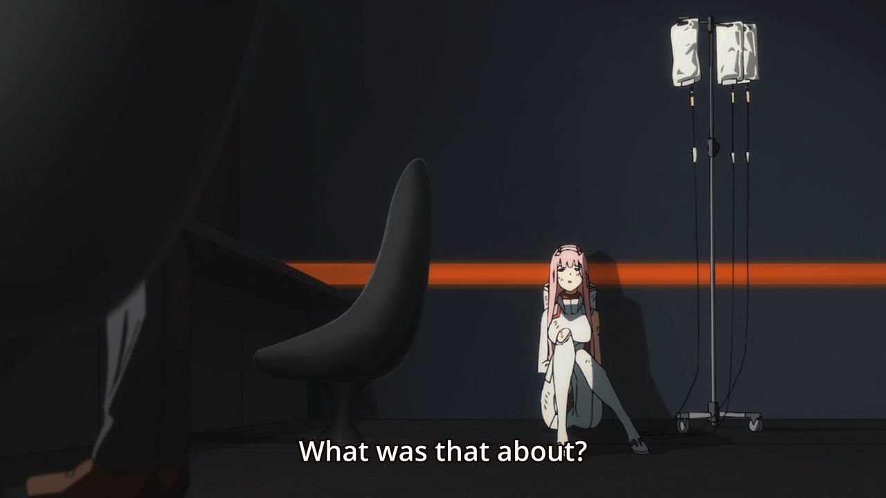 — I think the text in the corner kinda ruins the composition of the scene. I mean, if you’ve gotten this far, I doubt you need the show to tell you where Zero-Two currently is.