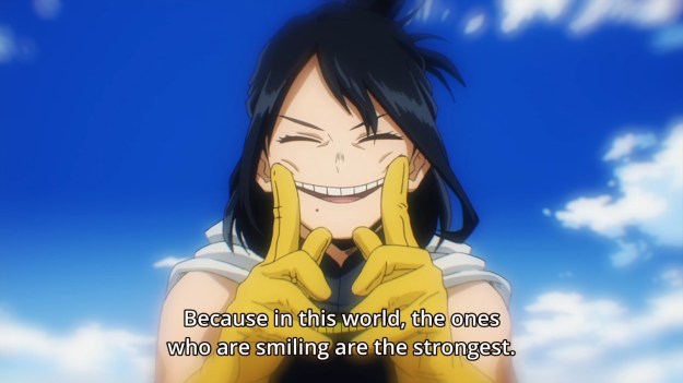 — All Might points to the camera and says, “Next, it’s your turn.” Again, this pumps everyone up, but Deku finally realizes his master’s all-too-delicate mortality. As he weeps, Bakugo looks on with… what looks like sympathy on his face. This is probably the most character development that the kid has ever undergone.