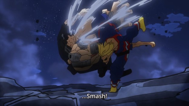 — But in the end, All Might gets in his United States of Smash, and it defeats All For One for good. The “of” part is the best part of the name. Unfortunately, he has to use up everything he has left in the tank, so he’s done for as a pro hero. The entire nation just watched a pro hero die on TV without realizing it. Everyone but Deku is cheering. He knows he must now fill All Might’s impossibly huge shoes, but he isn’t even close to being ready.