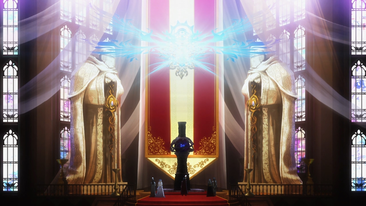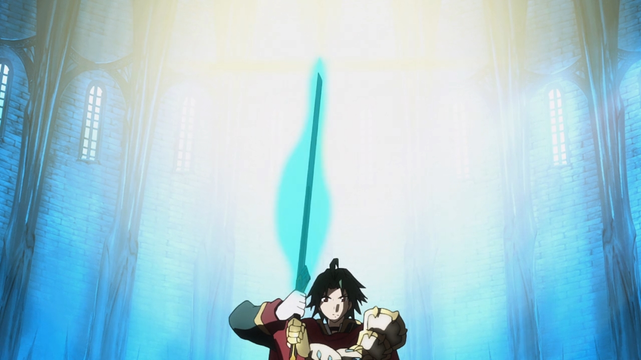 — To make a long story short — which is pretty much this adaptation’s downfall, but let’s just roll with it — Record of Grancrest War basically takes place on Earth. Civilization was whizbang awesome, but as always, foolish scientists had to develop some crazy “energy” that ended up wiping out the planet! Yeah, there are parallels to nuclear energy here, but hey, to our credit, we haven’t blown ourselves up yet! Anyways, the Age of Chaos is kind of like self-imposed stagnancy. If humanity constantly has to fend off demons and demonic monsters, then it can never rest long enough to develop awesome technology. And without awesome technology, it can never create a bomb that can blow itself up. Great. I just think it’s kinda stupid, though. First, this is all a bit unoriginal, but that’s not the part that bothers me the most. Second, all of the magic in this show seems pretty fucking impressive to me. Why do we draw the distinction between tech-based powers and magic-based powers? Can you really convince me that someone can’t one day create a magic spell strong enough to destroy the world? C’mon. Third, what’s… what’s with the whole God bullshit? And the Holy Grail? And demons. Technology is a double-edged sword, so we just pulled a bunch of supernatural shit out of our asses to combat it? What? There’s just so much about Record of Grancrest War that remains unexplained. And sure, I could read supplementary material, but I shouldn’t have to do that in order to understand the basic crux of the story’s central conflict.