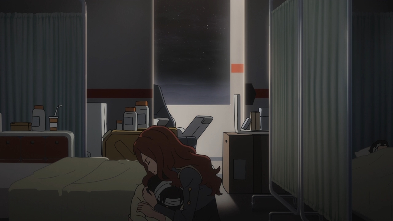 — Again, someone rushes to Hiro for guidance, but his mind is elsewhere. He’s worried about Zero Two and only Zero Two. This time, however, we get a clue about where those mysterious cuts are coming from. Yup, up there.