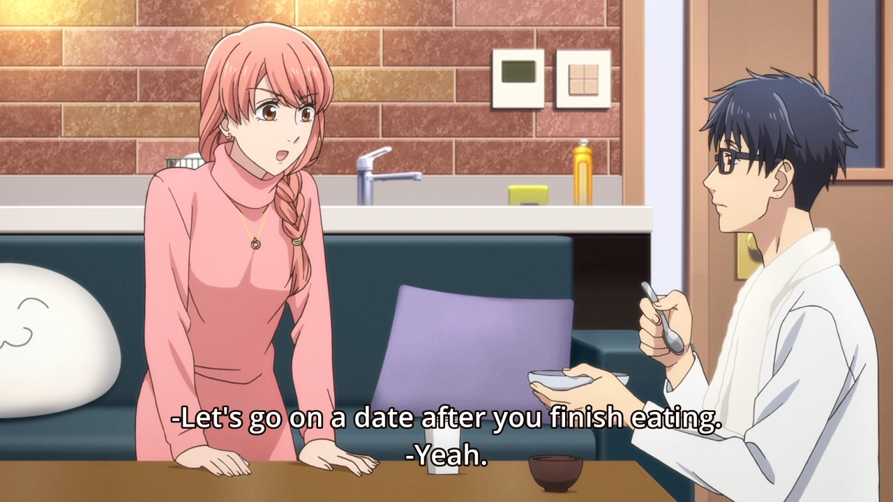 — Apparently, this is the first time that Narumi is cooking for Hirotaka, which sends her for a loop. I don’t know how long they’ve been dating, though. I also don’t really think this is a big deal anyways. Not everyone can cook (even though home-cooking is just following simple instructions).