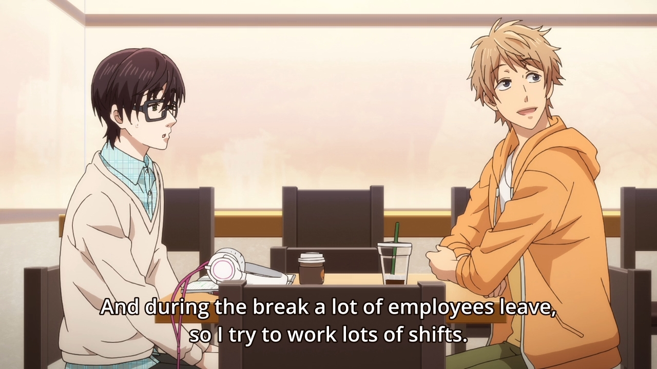 — Anyways, Kou learns that Nao hasn’t gotten tired of games at all (of course not). The only reason why he hasn’t been logging in lately is because he’s such a saint. Not only does he not want to bother his brother while the latter is on vacation, he also takes on more shifts to help his coworkers. Dude, what is this guy? Jesus incarnate? Nah, Jesus would probably be good at Mario Kart.