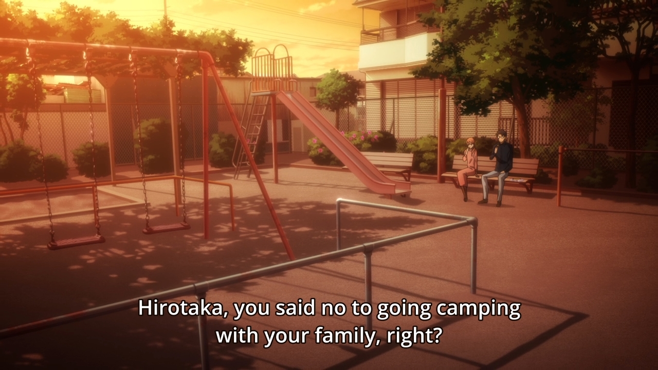 — Hirotaka is still hungry, so he initially tells her to go on without him. But look, she needs him! Progress…? Sigh. Nevertheless, this is good enough for Hirotaka, so he tries with all his might to crawl home. This in turn impresses Narumi. God, these otakus…