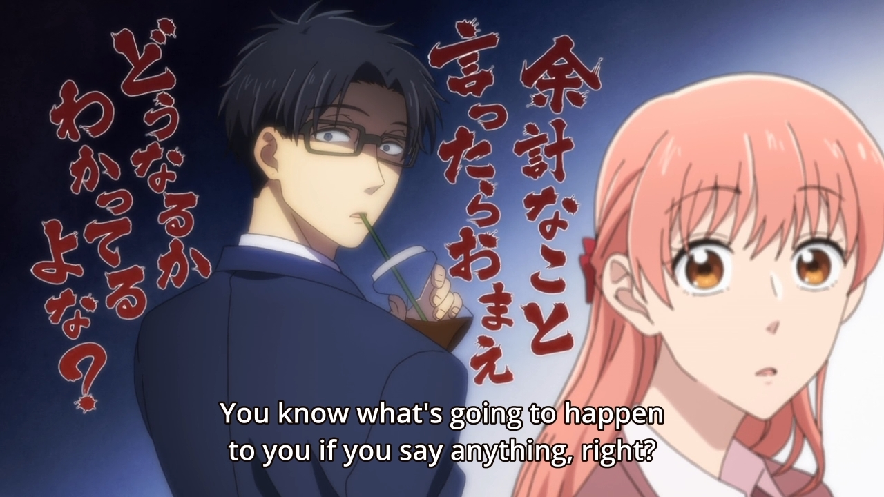 — We then see Hanako get on Taro’s case about BL manga. Naturally, their conversation soon devolves into a fight. The guy refuses to read BL manga probably because he’s a typical guy, and typical guys avoid gay stuff as if it’s infectious. Again, the problem here is simple. She just wants to share something that she loves with the man that she loves. Unfortunately, Hanako can’t quite spell this out to Taro, so he kinda has to piece together the clues until he realizes what she’s really asking for. To his credit, he finally relents and compromises. After all, relationships need compromise. Afterwards, he discovers that he actually enjoys what Hanako’s recommendation. Naturally, BL manga are just as good as any. Unfortunately, the ones that get turned into anime are often shit. Same with most yuri anime. Before you tell me that this is just my opinion, well, obviously. Whose opinion would it be if not mine?