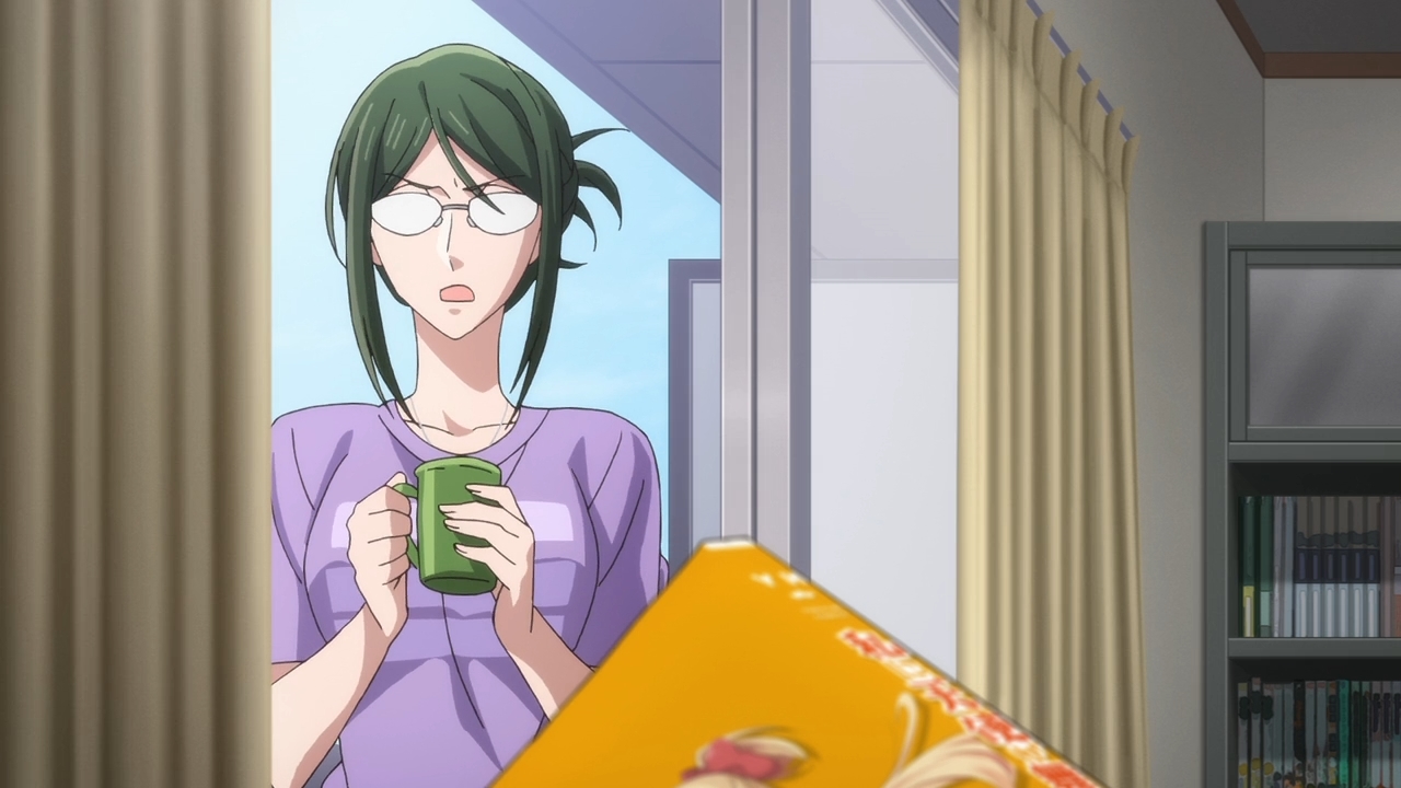 — In the middle of her cooking, Hirotaka emerges from the shower buck-naked. Is this the first time that she’s seen him in the nude as an adult? Not only that, he’s forgotten why she’s here. Welp.
