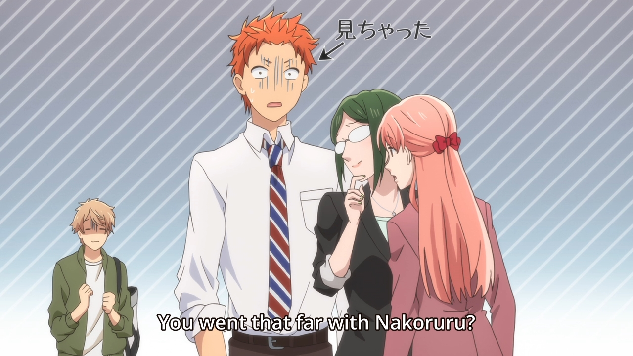 — Narumi learns that whenever Nao stays over, he kinda acts like Hirotaka’s mother. She, however, thinks that these chores are what a girlfriend should be doing for her boyfriend. Eh. Nevertheless, this gets her kinda jealous, so she drags Hirotaka on an impromptu date. Whatever works for them, I guess.