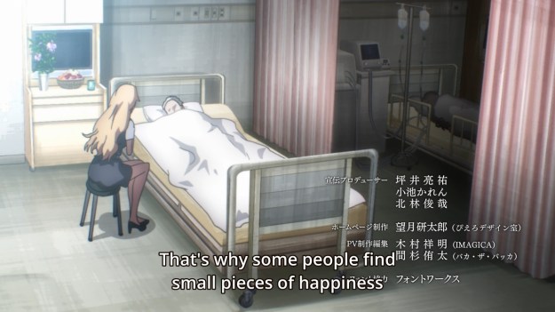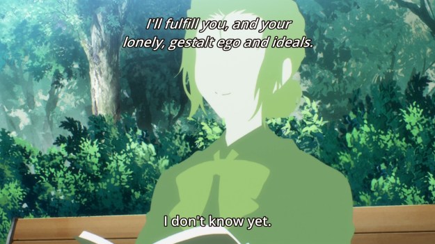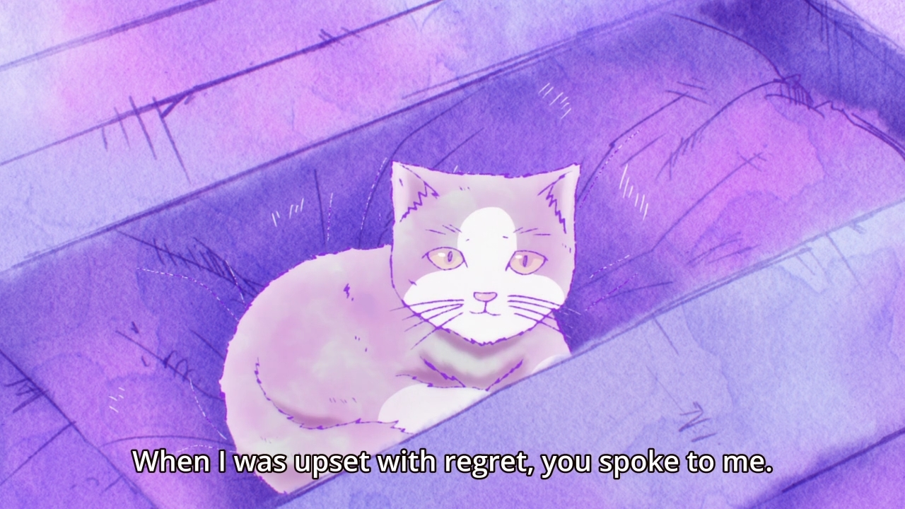 — What happens next is one really long speech from Ritsu about… I dunno, happiness and shit? Look, I got bored at this point and just droned him out. A cute cat shows up at one point, and that was the entire highlight of the scene. As for everything, I’ve stopped caring. I’ve said it before, and I’ll say it again: if Caligula Overdose ever gets localized, I’ll revisit this story and I’ll revisit it properly. But as far as this anime adaptation is concerned, I’m done. I’m done with the half-assed storytelling and paper-thin characters. I really don’t care what Ritsu has to say to Mu or how much she means to her.