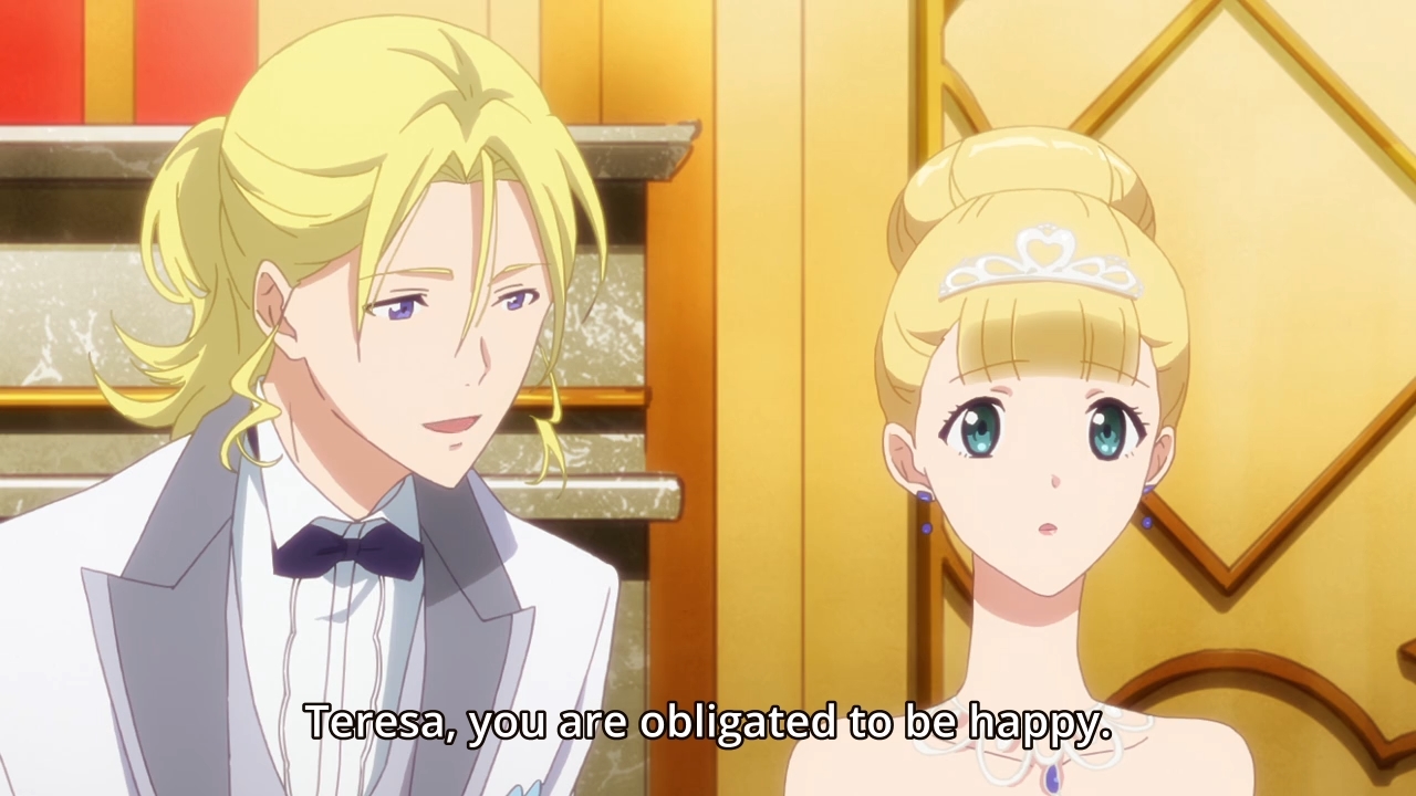 Much like its heroine, I suppose. Anyways, I’m sure you’ve heard about it, but Princess Ayako recently made the news by giving up her royal title. She, too, fell in love with a commoner. For the longest time, I didn’t understand why it was such a big deal for Teresa to fall in love with Mitsuyoshi. Why would she have to shirk her duties just because she loves a Japanese man? But hey, now it makes sense — now I see why it is such a struggle for Teresa. My problem was that I kept seeing her as a European princess, but she is ostensibly a Japanese one. I mean, c’mon, there’s no such thing as Larsenburg. The girl only hails from Europe, because 1) Japanese stories (anime or otherwise) loves modern western European culture and 2) they needed a good excuse for why Mitsuyoshi wouldn’t recognize her. Had she actually been a Japanese princess, this would’ve been a bit too difficult to swallow. But hey, turn a European princess into a giant Japanophile and there you go! If Princess Ayako has to renounce her royalty for love, I guess it only makes sense that Teresa would have to do the same.