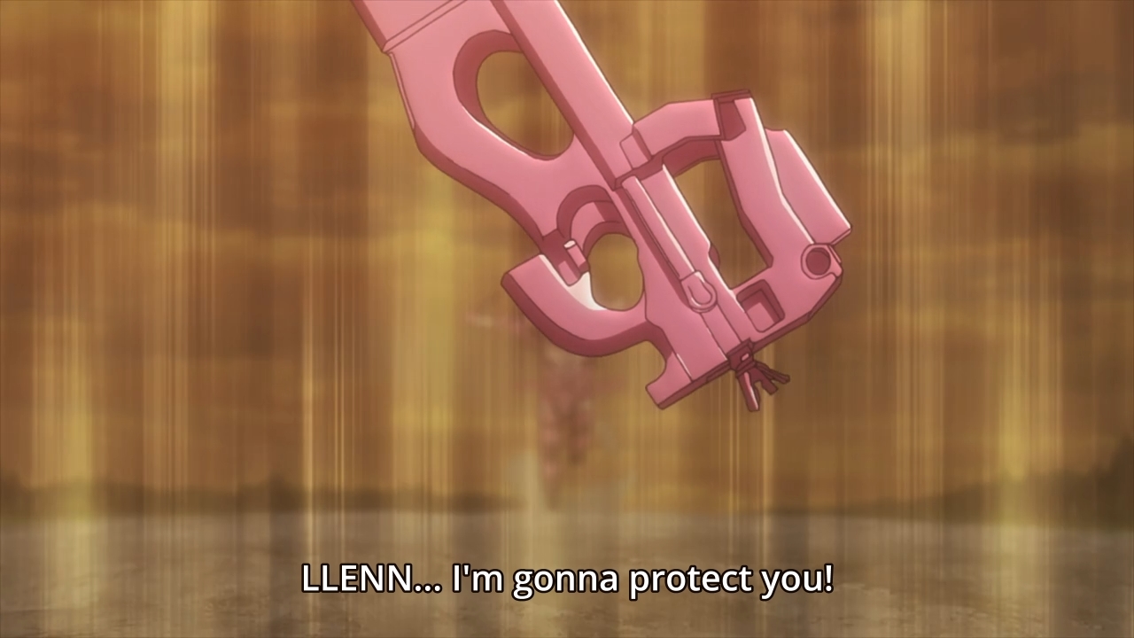 — At one point, Pito grabs P-chan and turns the gun on Karen. But there’s no way P-chan would betray her precious loli owner!