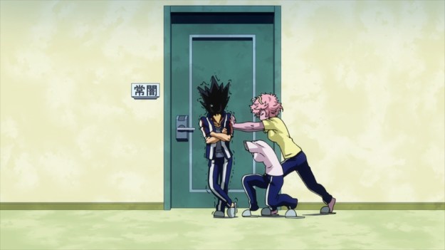 — Before anyone can even step into the building, Aizawa spoils the mood. I’m not going to say whether or not I agree with him, because I think this topic has been discussed to death. I just think that it’s such an empty threat from the viewer’s perspective. You wouldn’t have a show if you expelled everyone, so I won’t even entertain the idea that he would’ve done this.