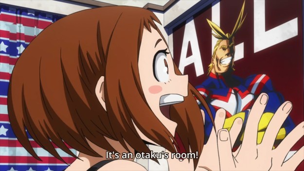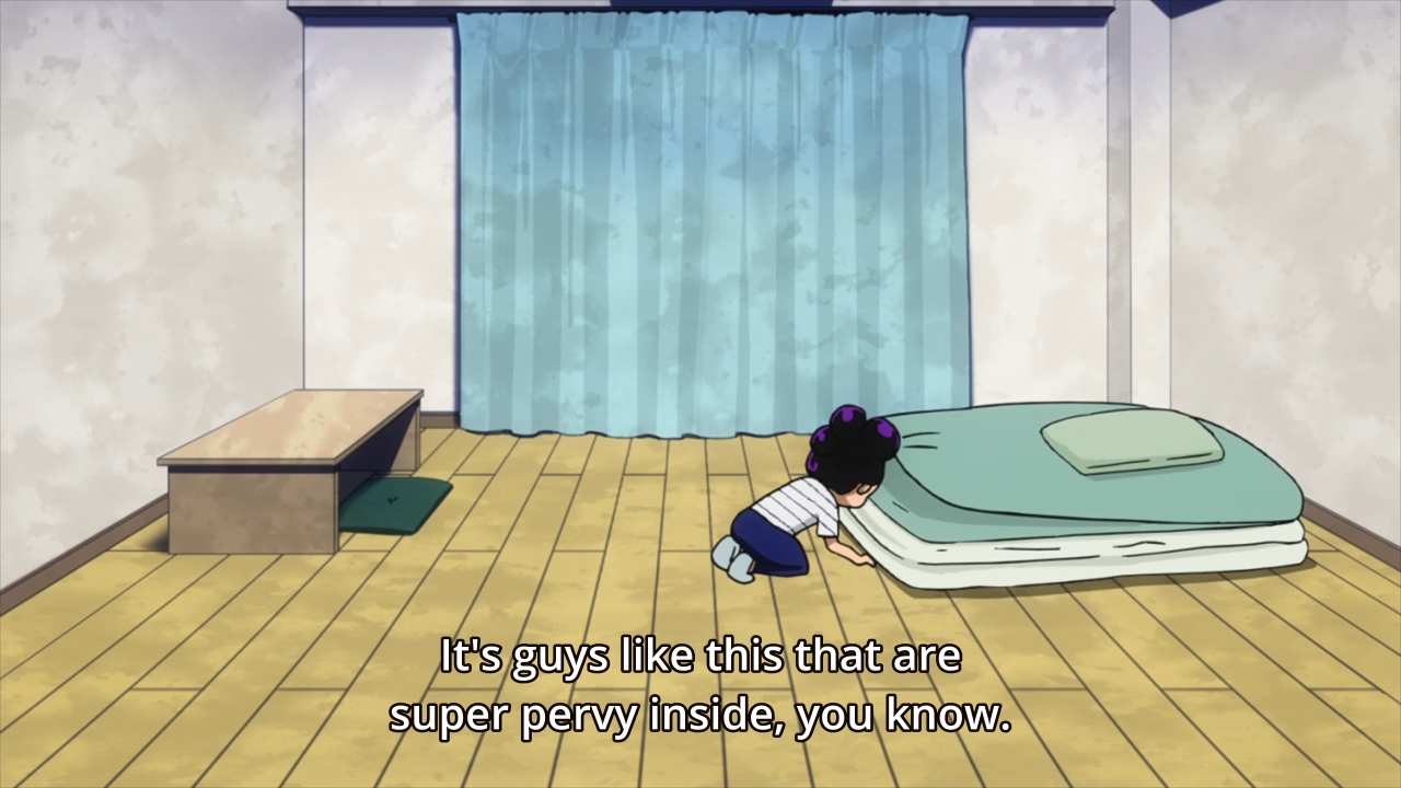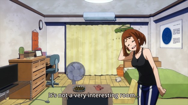 — Meanwhile, we don’t get to see Asui’s room, because she claims to not be feeling well. Obviously, something’s up, but I’m not disappointed that we don’t get to see her room. I know she’s a fan favorite, but she’s probably my favorite girl in Class 1-A. I don’t dislike her, but there’s nothing for me to like either.