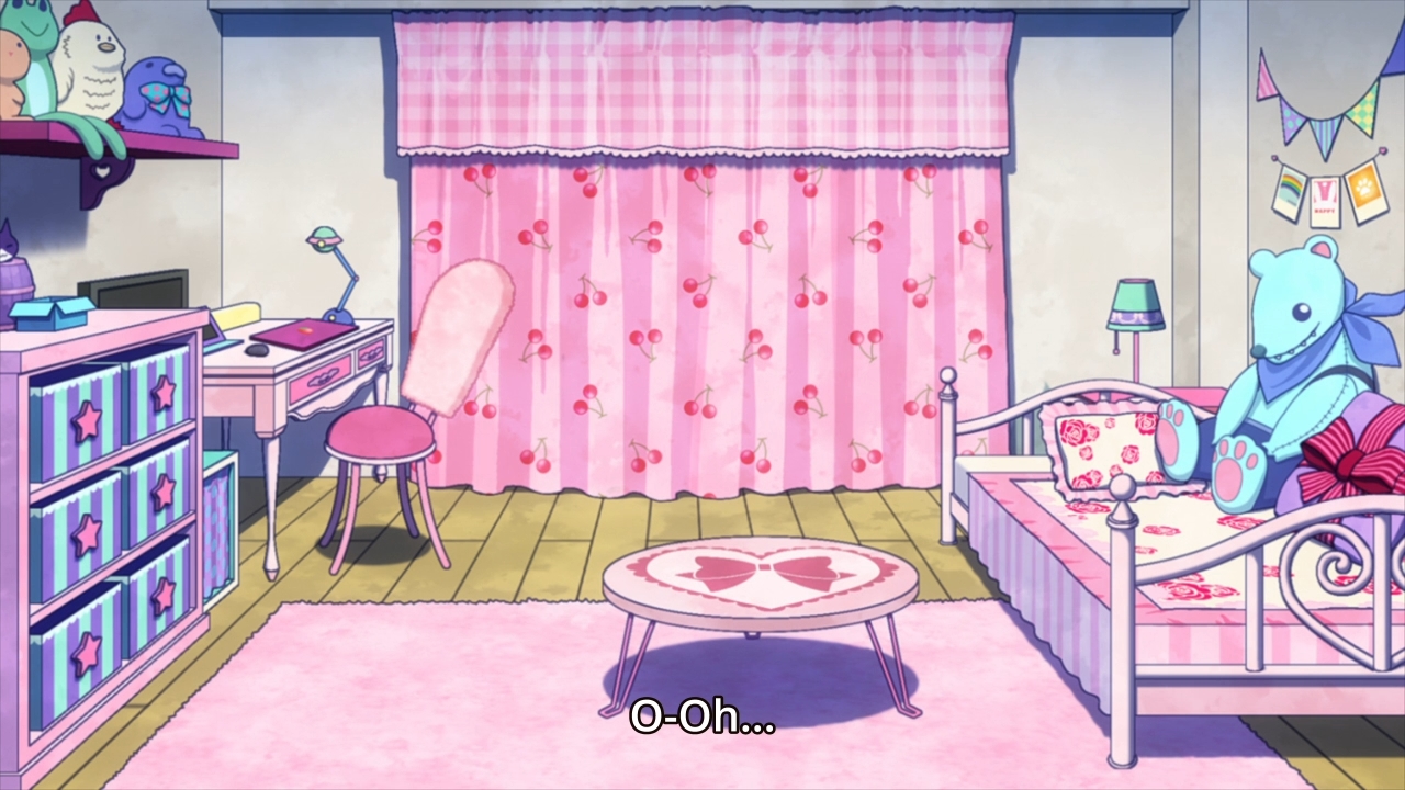 — Last but not least, rich girl Momo (it’s just easier to call her Momo than using her last name) is so sheltered, she didn’t realize her bed would’ve been too big for her dorm room. Oh well, at least her room isn’t an eyesore full of deeply saturated colors.