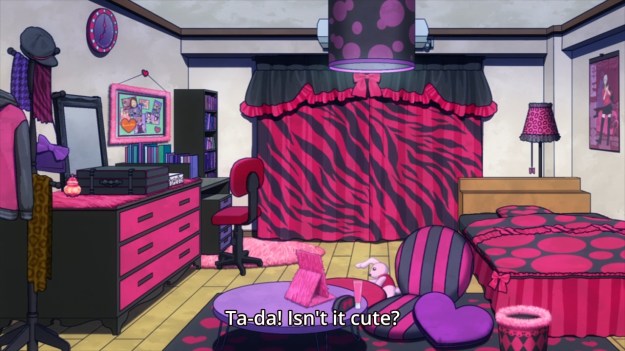 — It’s time to visit the girls’ rooms, but there are only six of them. Oh well. Jiro’s up first. Yeah, it looks neat and all, but how exactly does she expect to play any of those instruments in a dorm? Wouldn’t she bother everyone around her?