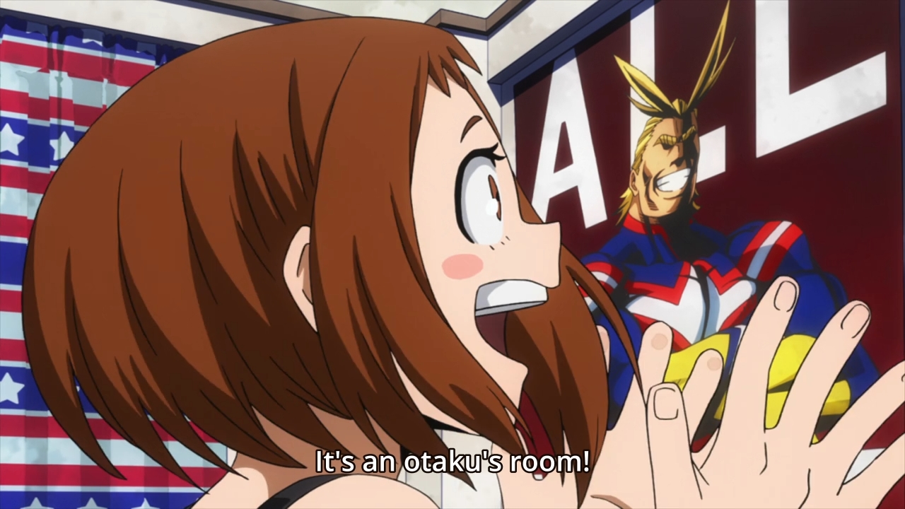 Yep, a fluffy episode but still fun. Glad Froppy aired her grievances, but she’s so kind I think calling them villains in her mind was like calling them mofos. Wish the girls had more quirky rooms like the guys. You wanna bet Bakugou’s room look similar to Deku’s? I think at the least he has multiple All Might posters.
