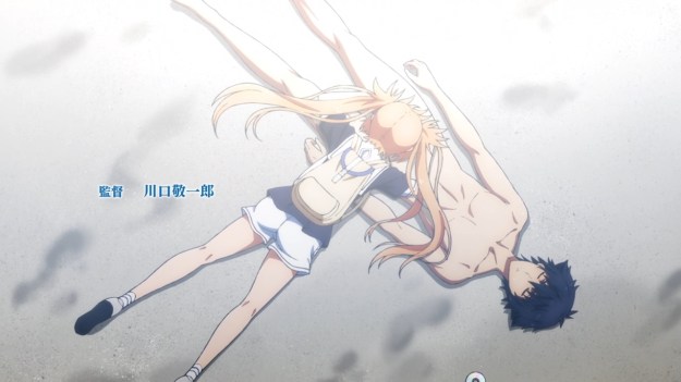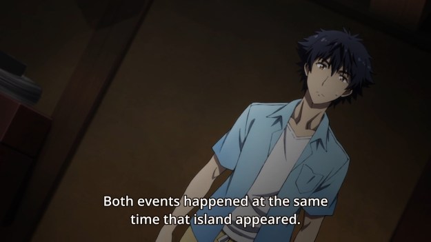 The first show on our docket is an adaptation of a visual novel by the name of Island. After watching the first episode, I laughed, I cried… well, I mostly laughed and not in the good way. Apparently, you can only be a female love interest if you are at least nine inches (i.e., the average height of a human head) shorter than the male lead. If the dude isn’t tiring his neck out to stare at you, then you’re doing it wrong. What is wrong with you, girl? Why are you not trying to be a loli? So goes this anime with a mystery that I’m supposed to take seriously, but I can’t really do that when one of the lolis is apparently a vampire who will die if sunlight touches her. But that’s stupid, isn’t it? At one point, we see the girl refusing to leave the shade, because, y’know, sunlight = bad. But that’s not how it works. Just because you’re in the shade doesn’t mean the sunlight hasn’t reached you. Everything reflects light. The ground reflects light. Why do you think you can even see in the shade? There’s just less sunlight in the shade, but you’re still fucking touching it.