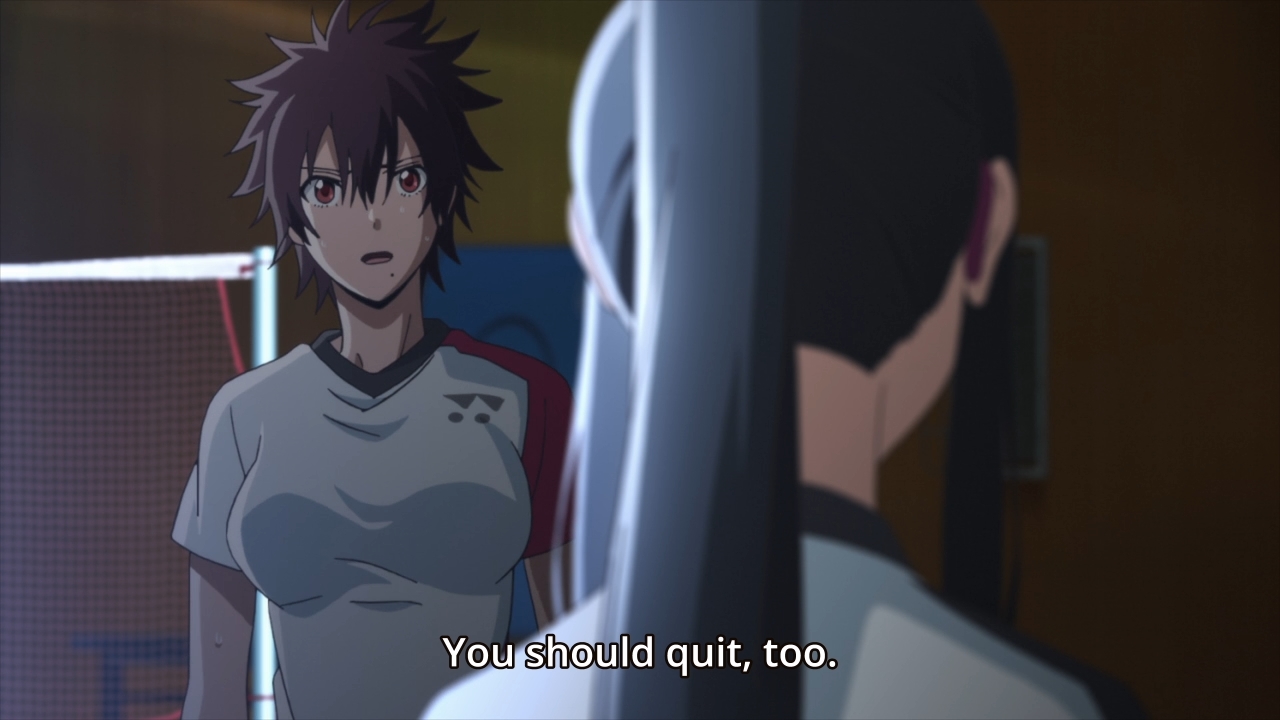 First, you recruit a kooky coach! Boy, he sure is a pervert. The guy doesn’t even show up to his first day on the job, because he’s too busy drooling over high school girls. I sure do want someone like that coaching a team full of (guess what?) high school girls. But since the team is full of losers, I guess that’ll just have to tolerate him for now. After all, he’s super knowledgeable about badminton! Hell, Kentarou was even picked to play in the Olympics! He never actually did, but he was picked! Okay, so you got your coach. Now, you need the talented prodigy who for some reason is disillusioned with the sport. After all, you need to spend your first episode or two on recruiting her to the team. And as luck would have it, Ayano ends up being a freshman at this high school. How serendipitous! Even though she’s quit badminton, you know she’s still got it. When a tennis ball threatened to hit her best friend Elena in the head, the girl suddenly flies in from the side and bats the ball back at the server! Wow! Unfortunately, she doesn’t take badminton very seriously anymore. She thinks it’s just a sport. But hey, we have the direct opposite in Nagisa. The short-haired girl takes badminton too seriously. Plus, she’s still haunted by her defeat to Ayano in the past. So what better way to prove that batting a shuttlecock around is important by getting your revenge on the court? Unfortunately, this is where the episode comes to an end. You’ll have to come back next week to see if Nagisa has improved enough to beat an out-of-shape Ayano.