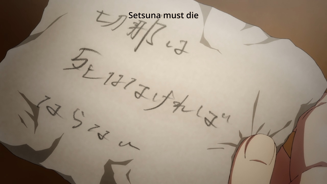 Did you get all that? Are you intrigued yet? Apparently, this island isn’t even the only island in the story. The characters keep talking about some other island appearing out of nowhere five years ago. Either that or I’m misunderstanding what Sara is trying to say. But as you can probably tell, I can’t take Island very seriously yet. It just seems so juvenile despite all of its attempts to craft a mystery. I mean, what am I supposed to do with clumsy lolis with dumb hair or hats? Or how Rinne singing a shitty song nevertheless brings Setsuna to tears. Then after watching him cry, she starts crying out of nowhere too. I had tuned the song out, but their exchange afterwards made me crack up. Then when she clings to him the next day and tells him that the sunlight would kill her… wow. What a killer story. He also finds notes hidden in books about how he must die. Kill Setsuna! Kill him good! Hilarious. Ah well, I guess I’ll keep tuning in for now. I mean, how much worse can this shit get?