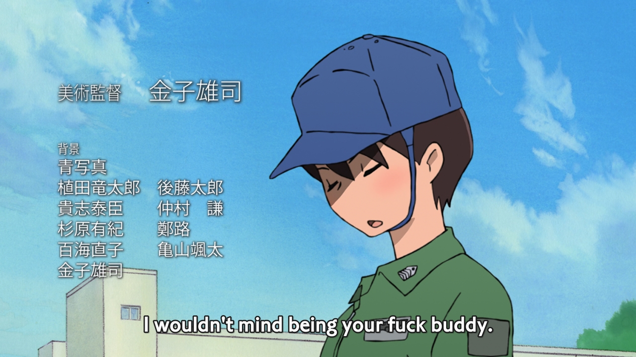 I thought Kuno Misaki did a bang-up job voicing Hisone. She gave the character a lot of charm, which really helped me survive a lot of the show’s slower moments. Who didn’t love her silly licking noises? Apparently, she also voiced Poppi Alpha in Xenoblade Chronicles 2. I’ll have to revisit that. All I remember is the robot’s lame English voice. Anyways, the heroine’s budding relationship with Haruto ended up being better than expected. I really loved the moment when she realized the true extent of her feelings, so she ran off screaming incoherently through the night. Unfortunately, the rest of the characters never really came into their own. I don’t care for the dragons. Personality-wise, they never seemed all that interesting to me. I dislike the show’s need to pair each of the girls up. Sure, Yutaka decided to stop being a perverted asshole, but I still felt like El fell for him too quickly and easily. As for Liliko having an interest in “Kingdom?” C’mon. I’m sure that was supposed to be a throwaway joke to cap off her character in the finale, but that’s my point: the story further relegates her to being a gimmick.