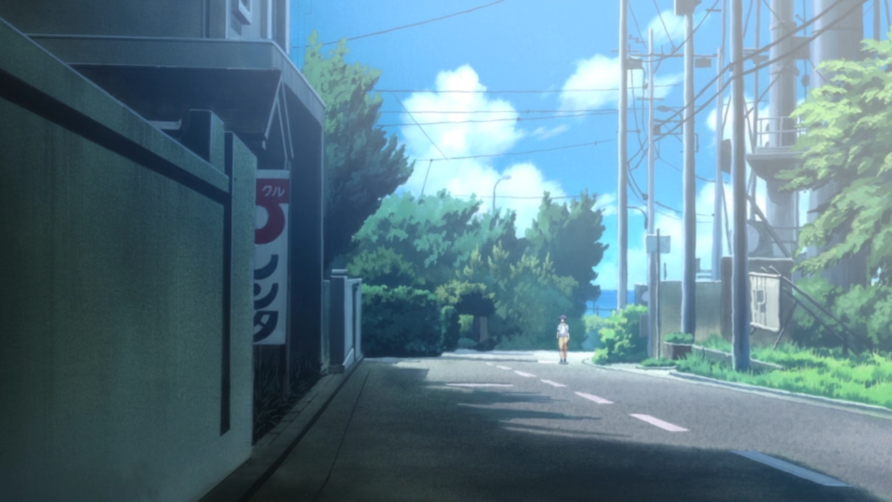 As Setsuna explores the island, with or without one of the three main girls by his side, he finds practically nothing but empty streets after empty streets. Like I asked last week, where is everybody? A dying island is one thing, but this place looks practically abandoned. It’s a ghost town. The main character might run into Karen’s high school friends, but none of the other kids. Even when we get to see Karen looking bored in class, the camera never pulls back to reveal the rest of the classroom. I don’t even know if there are any boys her age on this infernal island. At some point, Setsuna and Karen do come across an old lady selling shaved ice. She, however, eventually falls weak due to the soot blight syndrome (so it’s real). As a result, we get to see an old doctor. So yeah, just young girls and old people on this island so far. The policeman from last week’s episode is the only young man that we’ve seen besides Setsuna.