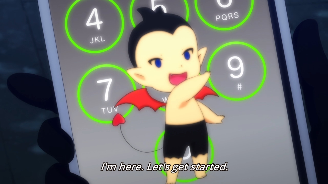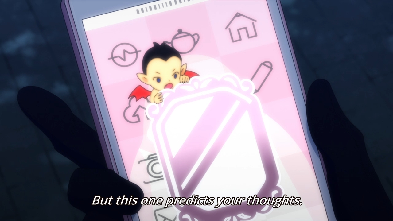 — Now we get to see Wayne possess a cellphone. For some reason, this means he has a devil boy avatar. Maybe he can force the smartphone to render his image.