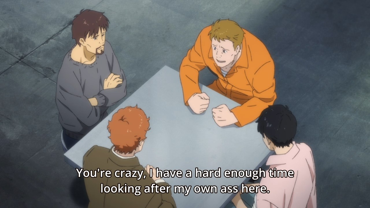 — And just like that, Eiji gets caught. Ash is stuck in prison, so he can’t come and save the day. But maybe Shorter Wong will come out of hiding to lend a hand. We’ll have to wait and see, though.