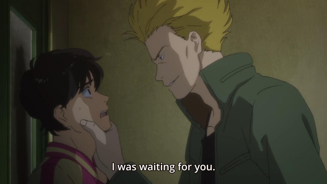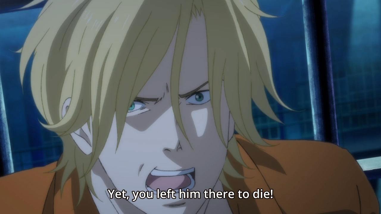 — Maybe this is why he’s taken such an interest in Eiji. The Japanese kid seems to represent purity — the only source of purity in Ash’s life. Eiji is older than Ash and yet so much younger mentally. This young, untainted soul has never even step foot in America before the start of this series, so of course he hasn’t been corrupted. Unlike Ash, Eiji’s just like this uncaged bird that can fly wherever he wants to fly. As such, he can trust Eiji. He can depend on Eiji. He can open up to Eiji. The problem, however, is that the more Ash leans on Eiji, the more he’ll weigh his friend down. For now, however, Ash doesn’t love Eiji. Not yet, anyways. He simply trusts the guy. He has a bigger fish to fry, so he’s going to use the Japanese kid towards that end. But once feelings start to run deeper, I suspect Ash will deeply regret having gotten Eiji involved in the first place.