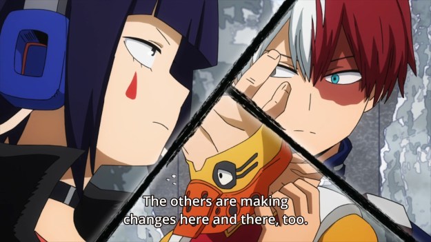 — But first things first, let’s talk about how My Hero Academia is such a tease. As Hatsume gushes on and on about how she can help Deku become a better version of himself, Uraraka looks somewhat unhappy off to the side. Unfortunately, she’s too young and inexperienced to articulate what’s bothering her.