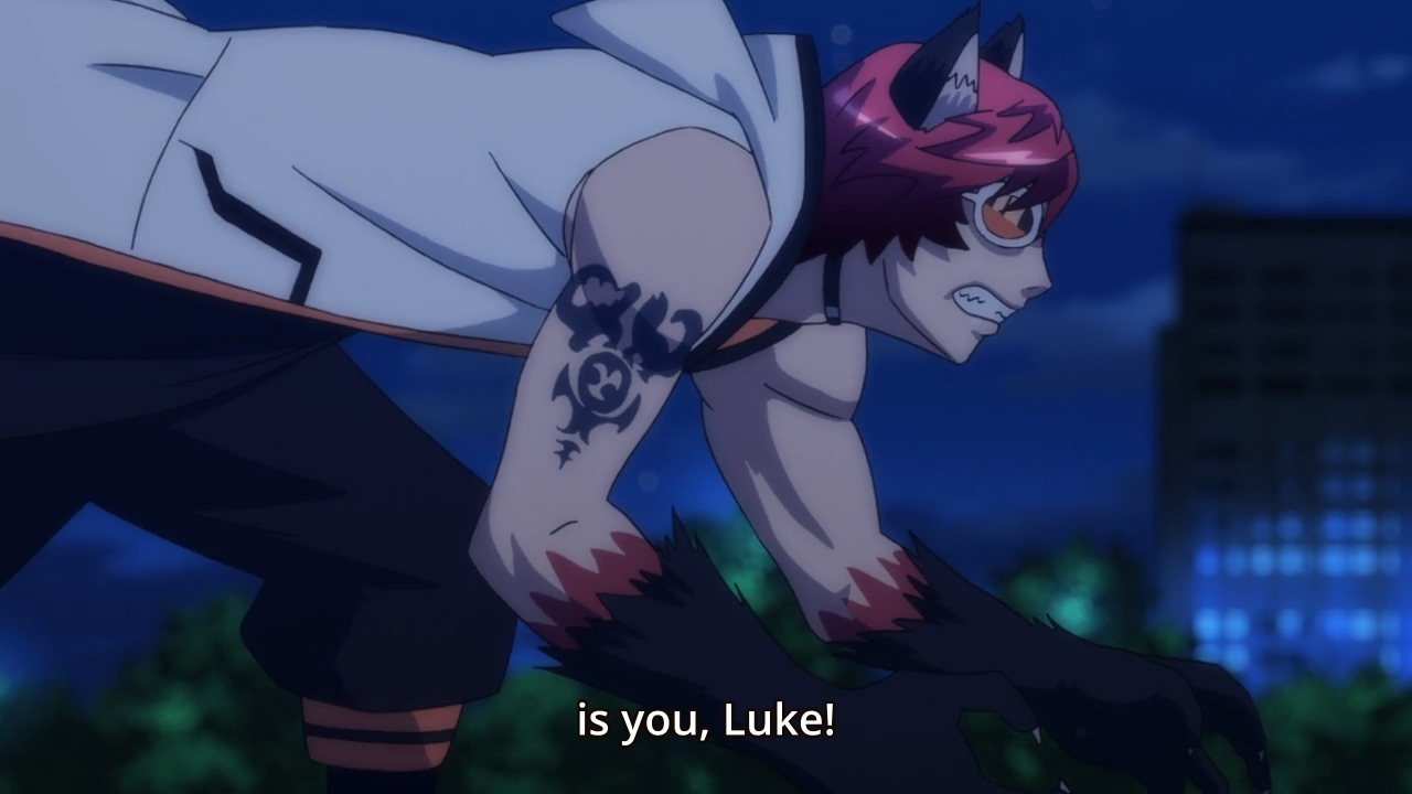 — Vlad then makes his entrance, says some bullshit I’ve already forgotten. Oh yeah, now I remember: thanks to all the howling, Vlad was able to use echolocation to find Luke. Yep. Afterwards, more fighting breaks out. Ton is looking for Shinyao, Vlad and Tauryu will continue to gun down dogs, and last but not least, Luke can finally fight Chris without holding anything back. That’s cool and all, but I just wish they hadn’t held back on the animation budget.