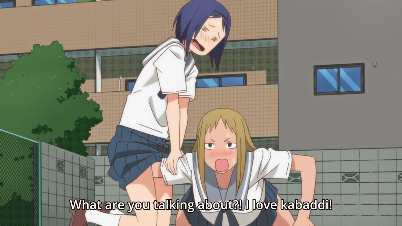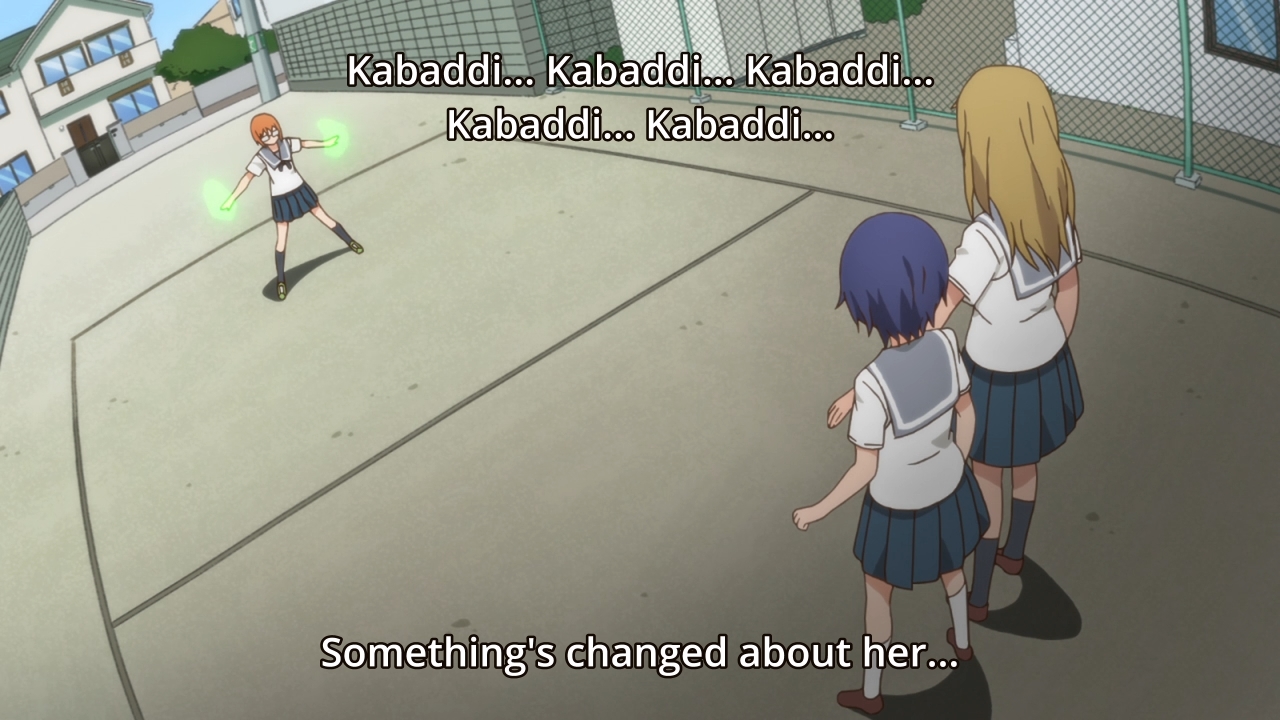 Chio’s CQC stuff was simultaneously cute and amusing. The kabaddi nonsense was also funny… up until Madoka refused to stop molesting Yuki. Just because they’re both girls doesn’t make it funny or acceptable. It’s too bad, ’cause I was enjoying the episode too. The ending just left a bad taste in my mouth.