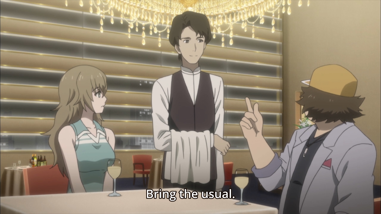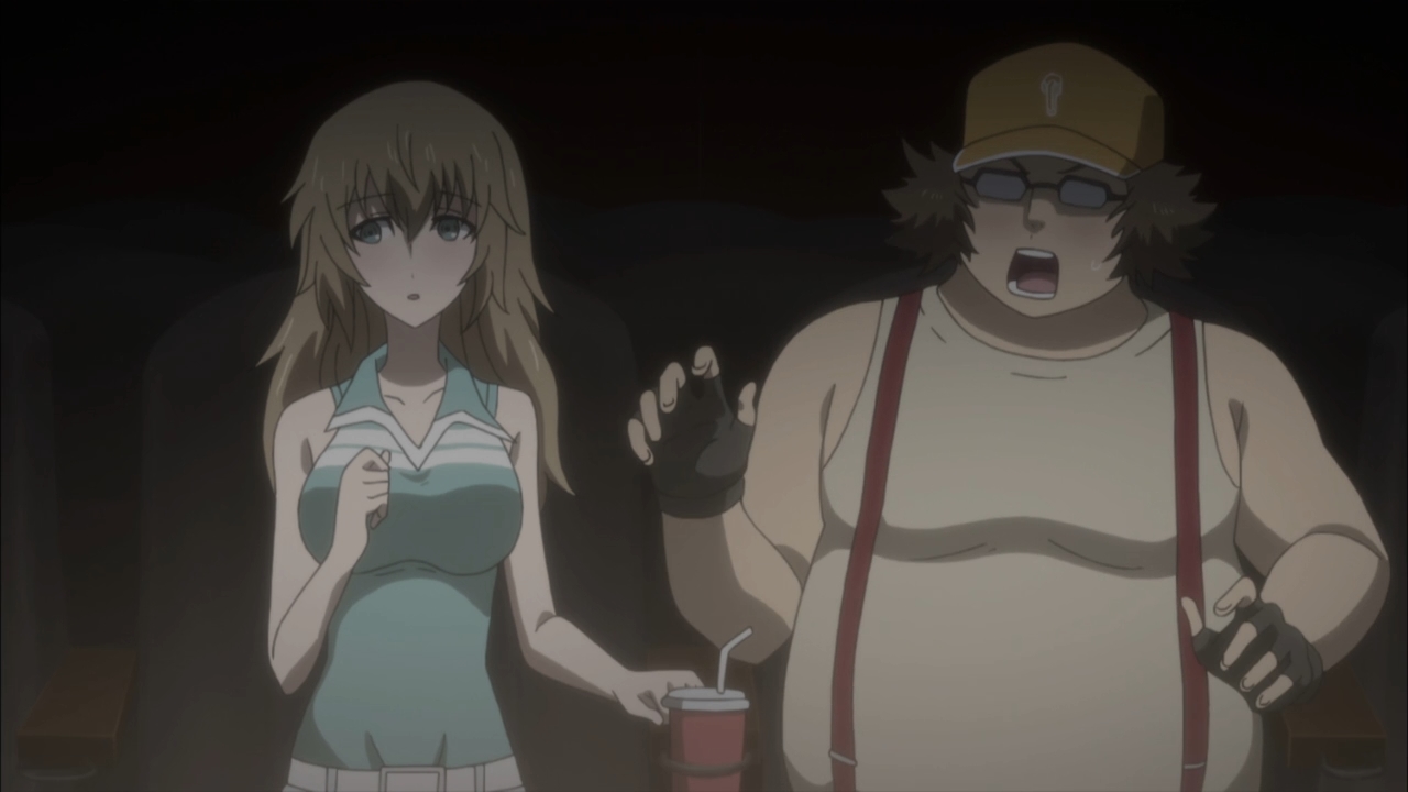 Good lord, I get to watch Daru go on a date with Yuki not once but twice. I also get to hear his goofy confession in his even goofier voice. It’s just too much, man. Could you imagine this guy trying to talk dirty in bed? Like making love to Barney or some shit. Anyways, the emotional underpinnings of the episode is solid. I just hate the execution. I mean, I do feel bad for Suzuha. Really, I do. The mental toil of her mission is getting to her. She’s been at this for so long, but there’s no end in sight. The whole Kagane business is unsettling, too. Most of all, it doesn’t help that her childhood memories are full of bad memories. Hell, she had to hold her mom’s lifeless body in her arms. So yeah, Suzuha just needs an emotional pick-me-up. What’s better than playing matchmaker for her future parents? I totally get this part. I totally feel for the girl. But I still didn’t enjoy the episode at all. I guess I’m still just waiting for the plot to really kick into gear, and it feels like we’re spinning our wheels with a Daru sidestory. Then after a feelgood crying session with Suzuha, the anime suddenly cuts to a tweaked-out Kagane. Sorry, but I couldn’t help bursting into laughter. That is such a ridiculous juxtaposition.