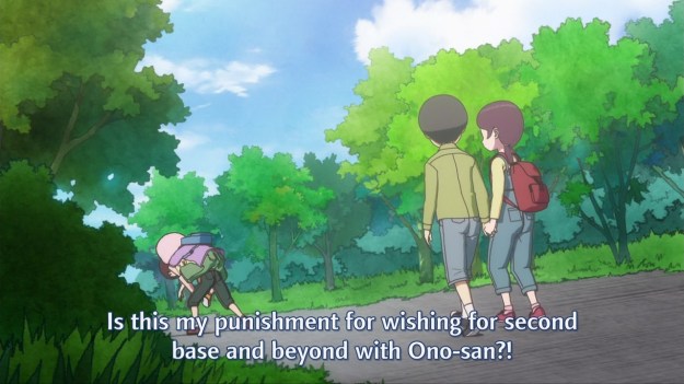 — It becomes increasingly obvious that Akira has no intention of rejoining the rest of the group. She just wants to spend time with Haruo. She continues to suggest games and after games for them to play together. Akira used to only want to play alone. Y’know, gun for the high score or something. Well, we’re not getting any of that nonsense in this week’s episode.