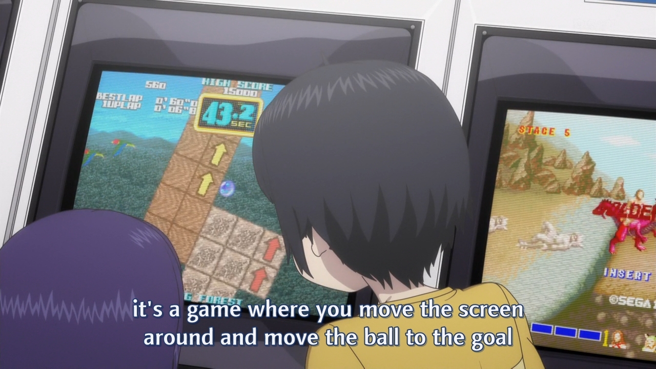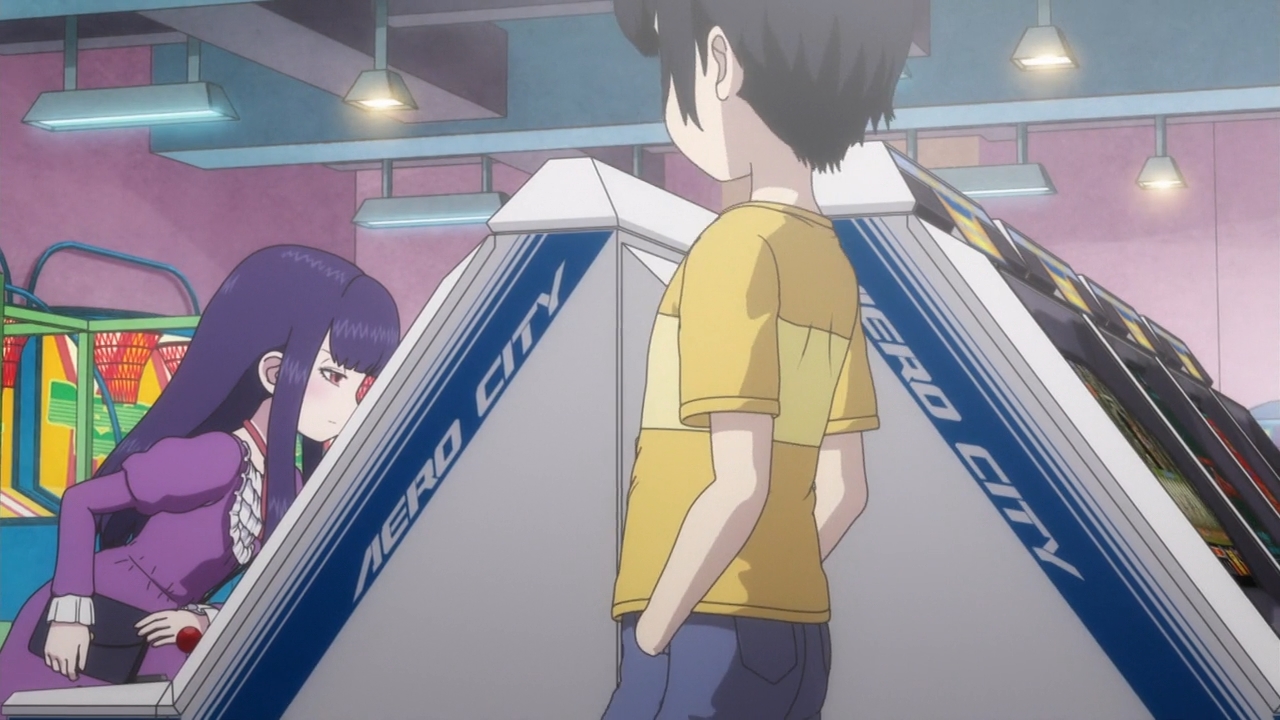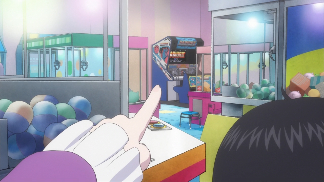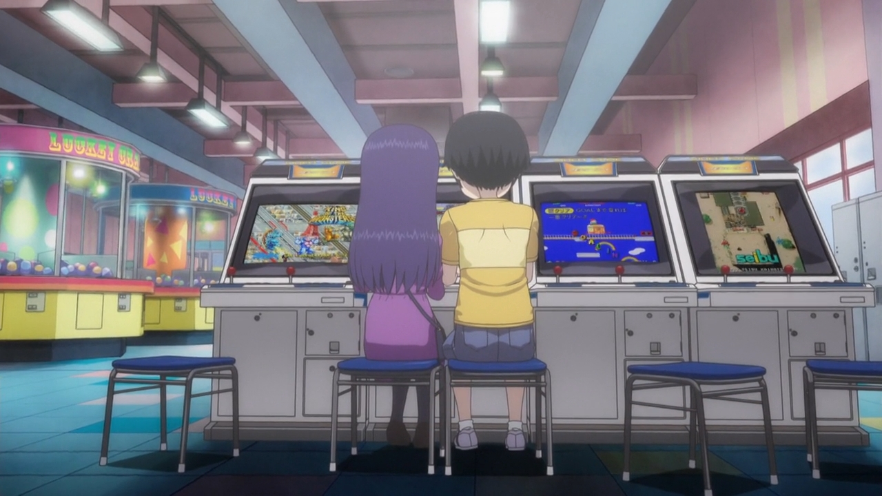— After Akira departs with her butler, Haruo heads off to the arcade. He starts to sort out his ambivalent feelings. He hates her, but he respects her. He now has his safe space back, but he’ll also miss her. She bruised his ego by being better at him than almost every arcade game, but at the same time, he was happy to have finally met an equal. I really like this scene, because it accurately portrays that awkward transition in life. At some point, you start thinking of girls as “not-boys.” Instead, you think of them as people of interest. Well, I don’t think I put that correctly, but I think you get the point. Haruo’s not in love with Akira or anything, but obviously, she means more to him than just another classmate.