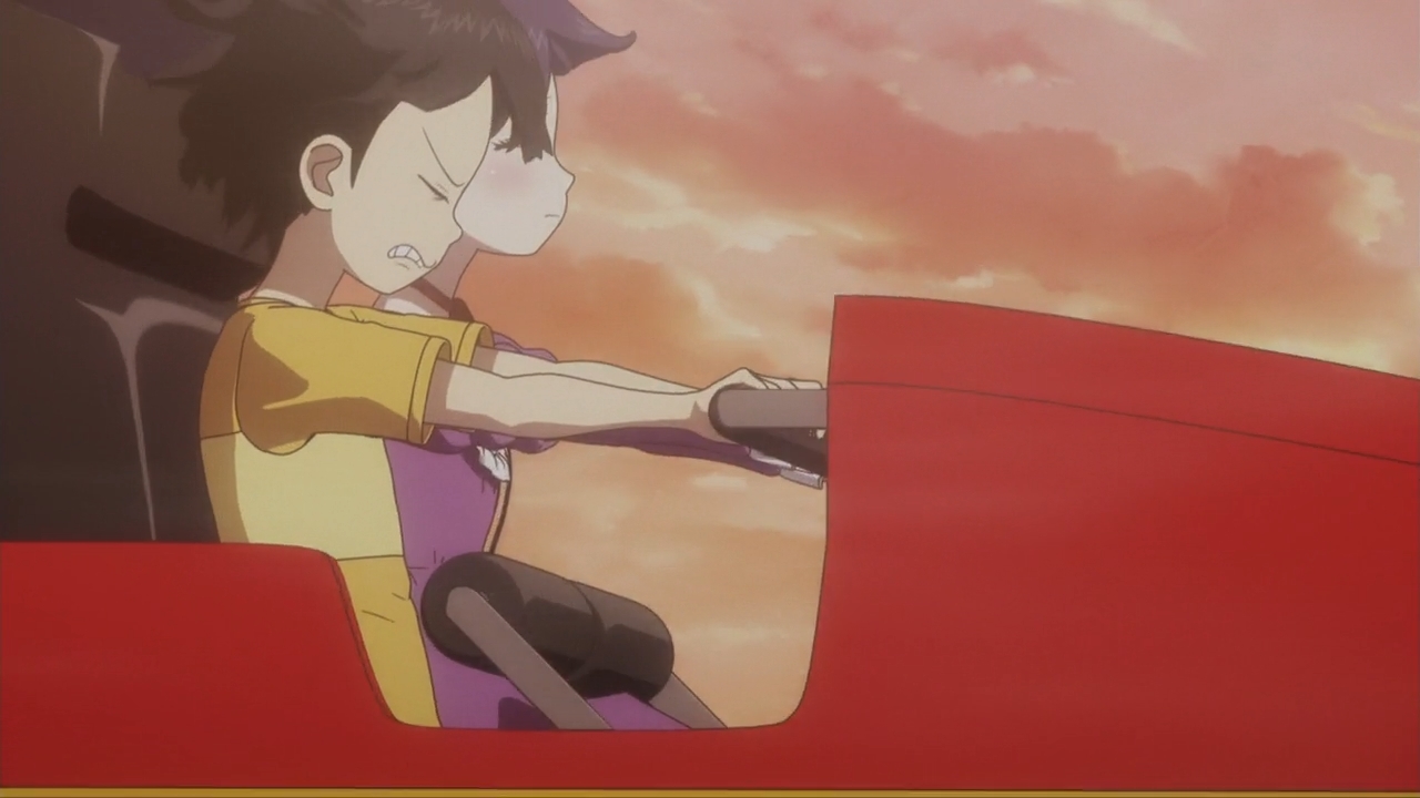 — When Haruo finally gets to the airport, he starts going on and on about an upcoming arcade game. That’s his awkward way of saying that he’ll miss her. Oh man, this kick-ass moment in gaming history is about to happen, and we won’t be able to share it! It’s equally sweet and sad. She can’t communicate properly with him, because she has issues talking. He can’t communicate properly with her, because he’s still somewhat of a social outcast. But at least they understand each other.