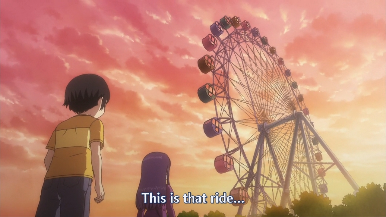 — Unfortunately, the park is closed, so Haruo and Akira have to skip the ferris wheel for now. Still, he gets to ride home on the bus with the girl alone, so that’s still something. A girl resting her head on your shoulder is like… well, it’s not first base, that’s for sure. It’s like fouling out at the plate. At least you didn’t strike out.