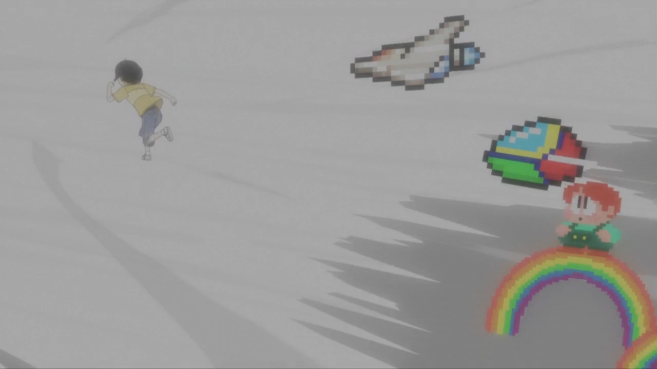 — All of the games around him start cheering him on. Spurred by their words of encouragement, Haruo races off to the airport to see Akira off one last time. This is more what I had hoped the anime to be. I don’t really care about random trivia about games. I wanted the games to contribute significantly to the story. And obviously, Haruo doesn’t actually think that the games are speaking to him. He’s not crazy (at least, I hope not…). Rather, he’s trying to convince himself to get off his ass and start moving, but he’s still, y’know, embarrassed about the whole situation. So instead, it makes more sense to pretend that the games are motivating him.
