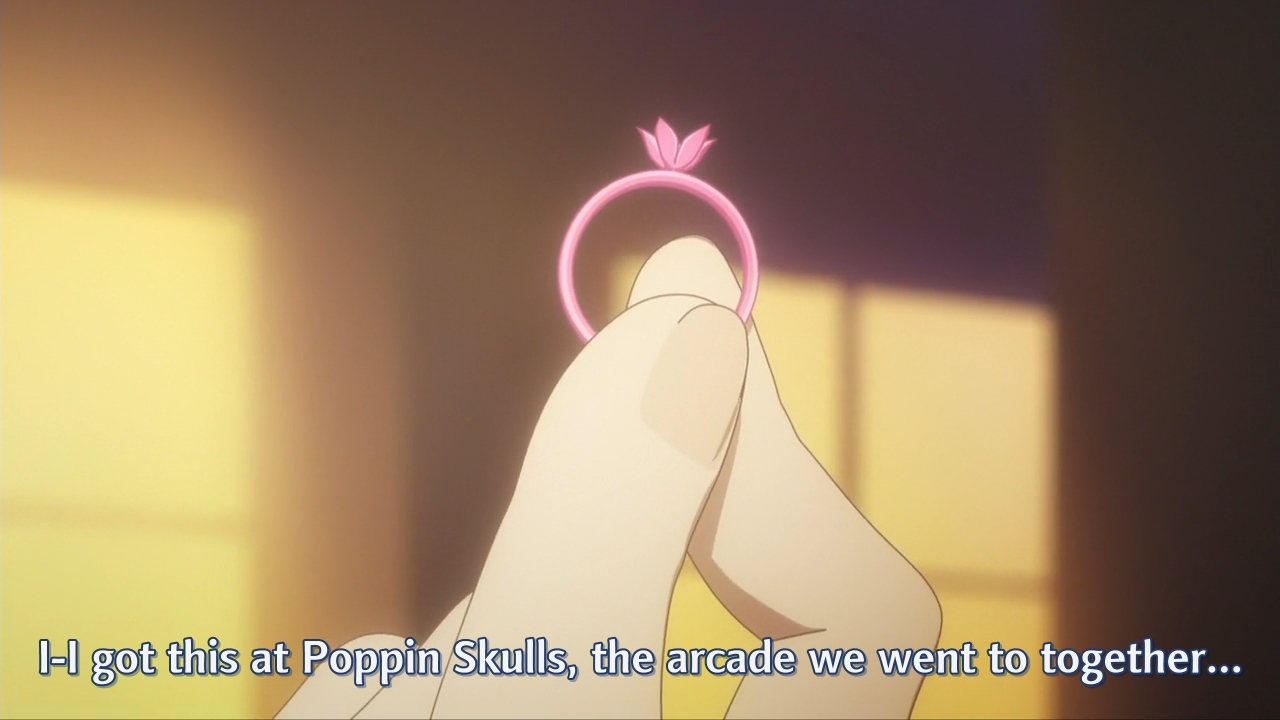 — Ah, there’s that ring. His parting gift to Akira is a cheap plastic ring that he had won from that spooky arcade. But of course, they found that place together, so there’s sentimental value up the wazoo here. And as a result, she dives into his arms and starts wailing. This is the most noise she has probably made in months (if not years).