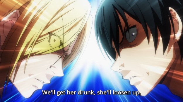These guys sound like a bunch of date rapists. The show almost seems alright when it settles down a bit to talk about diving. But as always, dumb, nude hijinks are always around the corner. After three episodes, this show still sucks. The humor blows, the characters are terrible, and the animation is piss-poor. The preseason hype seemed to revolve around Grand Blue and High Score Girl. The latter may very well live up to its lofty promise. Grand Blue, on the other hand, has been a huge letdown.